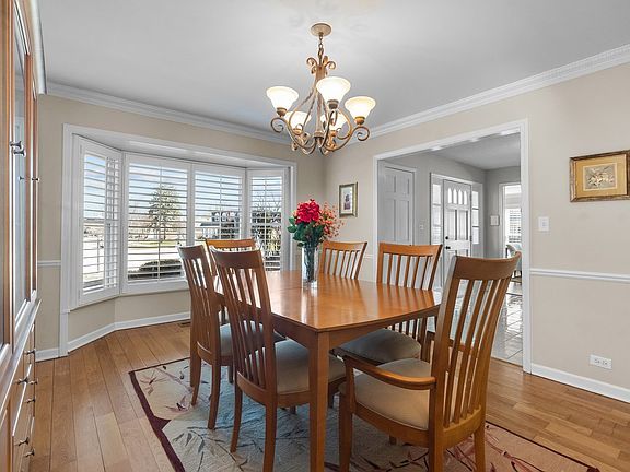 The house you've been waiting for in Glenview! Beautiful 5 bedroom, 3 and a half bathroom home in the highly coveted La Fontaine neighborhood. Open floor plan with great flow and plenty of closet space. Main level has updated white eat-in kitchen with granite countertops, stainless steel appliances, double wall ovens, butler pantry, french doors to outdoor brick paver patio and large fully fenced in backyard, family room with fireplace, beadboard, hardwood floors and sliders to backyard, living room with chair rail, crown moldings and hardwood floors, dining room with chair rail, crown moldings, bay window, and hardwood floors, laundry room/mudroom off of 2 car attached garage plus door to backyard, half bathroom, spacious foyer and bridal staircase. 2nd floor has 4 large bedrooms and 2 full bathrooms including huge en suite primary bedroom with whirlpool tub and walk-in closet. Hardwood floors under carpets in bedrooms 2, 3, and 4. Lower level basement has nice size recreation area, 5th bedroom/office, full bathroom, and crawl space with concrete floor for extra storage. Wonderful curb appeal on quiet street. Great location close to Glenbrook South High School, shopping, dining, The Glen and Flick Park. Must see!!!