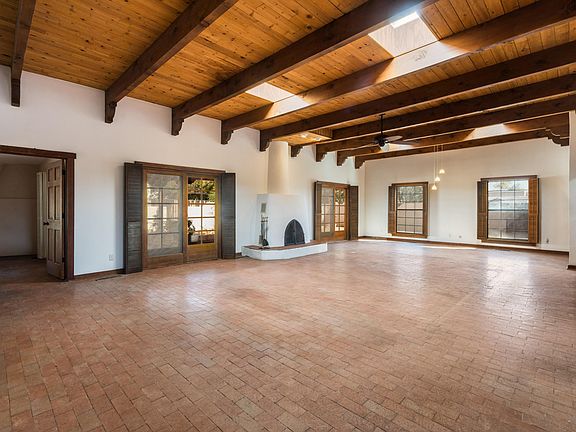 Wait until you see this Santa Fe style home in a wonderful location off NM528/Southern area. From the red brick flooring throughout the home to the Vigas in the Main Living areas, this home exudes New Mexico style. This home has 2 A/C combo units From Anderson Air corp, and a TPO roofing system from that has been cared for by the builder since it was installed. Large circle driveway for easy access. expansive primary suite w/ fireplace and walk in closet is separate from the other two bedrooms that share a full bathroom. Fourth bedroom could be in laws quarters or office. The main living area has an open floorplan and includes a dining area. This one is a must see. Enjoy the New Mexico weather on your covered patio with red brick flooring