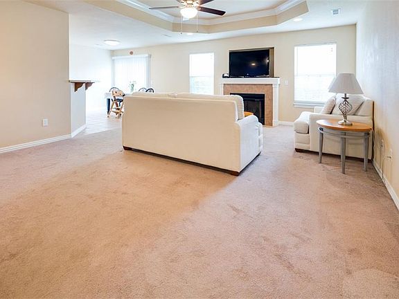 Adorable, well maintained home. Open floor plan with large kitchen that has new appliances, large living room. Tile in hallway, kitchen, dining area and bathrooms. Newer carpet, new Trane 4 ton HVAC unit, nice size laundry room. 2" Faux blinds throughout home. F5 rated registered storm shelter in garage. Small patio in back for grilling out. Fenced back yard that is great for pets or children.