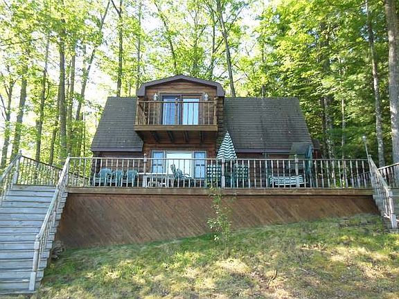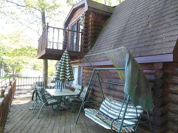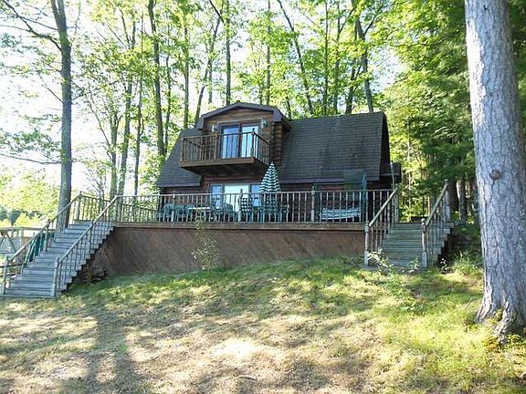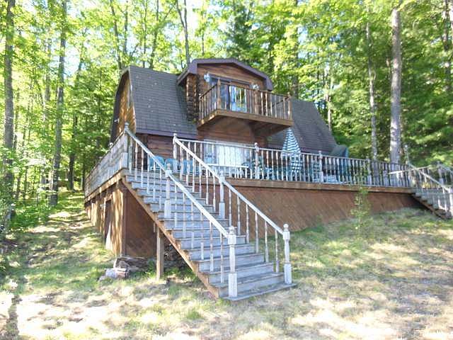 Looking for a waterfront home or cottage with a sandy beach on a all sports lake and with a up-north log cabin look, then this is the place for you. Sharp barn style cottage with log siding large wraparound deck, 2 bedrooms up, the large master bedroom has walkout onto a balcony deck with a great lake view, utility/storage room on main level, full bath, open kitchen, dining and living space on main level, beautiful wood flooring and trim throughout, on a deep crawl space with lots of storage room underneath, and a gentle slop to the fire pit and sandy beach at the lake. Being sold mostly furnished and ready for those great summer vacations. (Do not walk on Boat Dock)