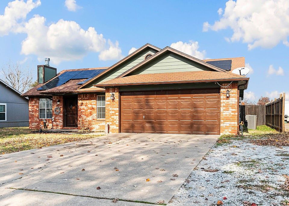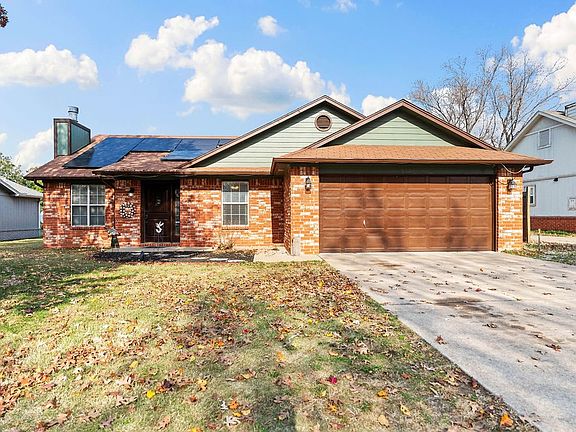Updated home in a prime Rogers location! Backing up to Reagan Elementary, this charming, all brick property offers convenience and comfort with easy access to schools, restaurants, and I-49. Inside, you’ll find vaulted ceilings, gas fireplace, open living room to dining room and stylish new flooring throughout the home. The kitchen features an electric range (replaced in 2016), while all bathrooms have been upgraded with new faucets and granite countertops. Enjoy year-round relaxation in the sunroom overlooking a landscaped backyard with a garden, new back deck and 10x10 storage building. Sunroom has adapted ac/ heater for year-round use. Energy efficiency shines with paid-off solar panels and a whole-home water filtration system, both conveying with the sale. Additional highlights include a newer furnace (2016) and an oversized garage providing extra storage space. More photos coming soon—don’t miss this move-in ready home blending updates, functionality, and a great location!
