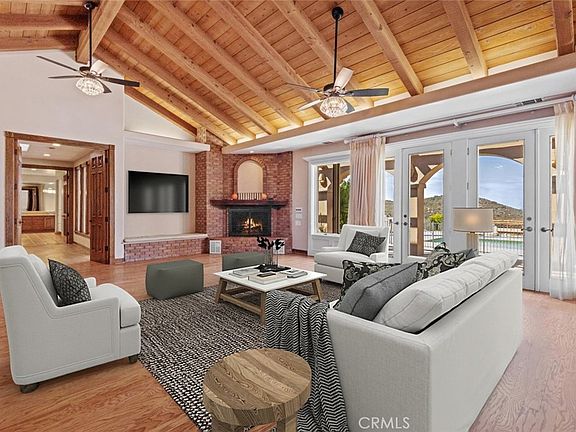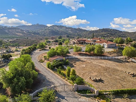 HUGE PRICE REDUCTION! Beautiful Grand Equestrian Estate with Panoramic Views & Endless Possibilities in La Cresta. Set atop 5.55 breathtaking acres, this spectacular La Cresta equestrian estate offers panoramic views from every window, luxurious living spaces, and versatile additions including a studio casita and a converted caretaker home attached to the barn. A 5-stall barn, RV garage, fenced pool with view deck & outdoor kitchen, and indoor spa make this a true dream property. Enter through solid wood double doors into a stunning foyer with terra cotta tile, leading to formal living and dining rooms featuring marble floors, wood-beamed vaulted ceilings, and oversized windows showcasing majestic mountain and garden views. The grand family room impresses with a fireplace, wood floors, custom built-ins, and French doors to the patio and pool. The spacious kitchen includes granite counters, wood cabinetry, a large island, and views of the pool and mountains. A den or office, additional flex space with built-ins, and access to the spa room offer flexible living. The primary suite boasts incredible views, a fireplace, private office, outdoor access, and a luxurious en suite with soaking tub, dual vanities, and two walk-in closets. Upstairs via two staircases, find a spacious loft, 3 bedrooms, and a huge balcony. Two junior suites downstairs feature private baths and walk-in closets, plus an additional den/bedroom. The studio casita includes a full bath, walk-in closet, and kitchenette space. The attached barn unit offers a living area, kitchen, 2 bedrooms, and a bathroom—perfect for guests or caretakers. There's a leased solar system for energy efficiency. Additional adjacent 5-acre parcel also for sale on Via Baya—combine for a rare 10+ acre equestrian estate!