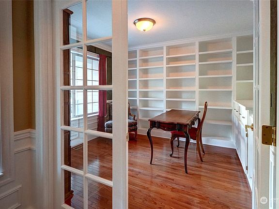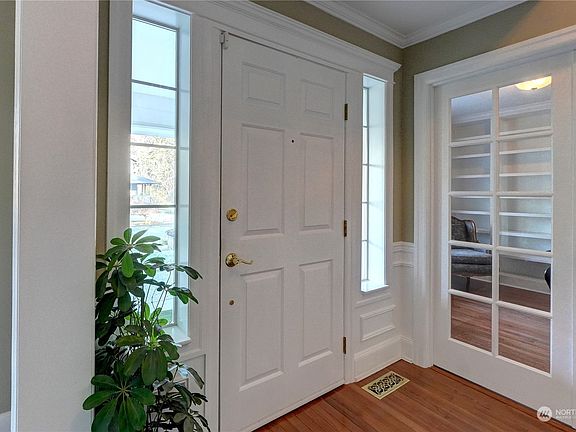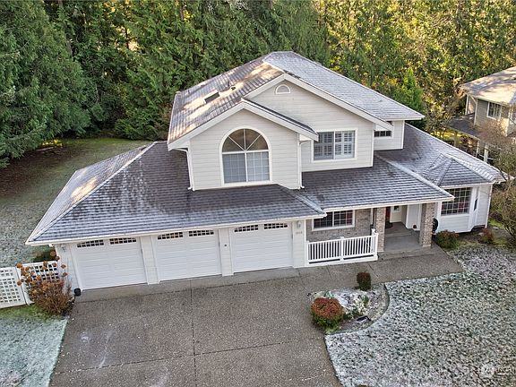 Experience living in Gig Harbor! This traditional two story, one owner home is amazing. Set on a very private, dead end cul de sac, peace and serenity await you. As you enter, note the grand staircase and beautiful, custom woodwork. The spacious living room with bay window has easy access to the one of a kind dining room. Coffered ceiling, custom mill work, beautiful chandelier. The black and white kitchen with solid and glass front cabinets, stainless steel appliances and dining area lets you right into your comfy family room with gas fireplace and custom shelving for your TV and entertainment devices. Laundry room & half bath on main floor. Upstairs the grand primary suite with spa like bath, 2 more bdrms, bonus room & full bath