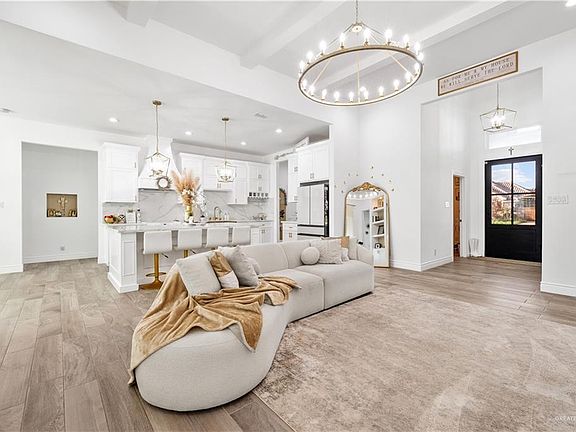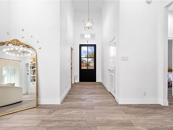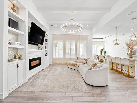 Welcome to this beautifully maintained 2022 custom-built home in the gated community of Tuscany Village! Featuring 4 bedrooms, 2.5 bathrooms, a dedicated office, and a walk-in pantry, this 2,300 sq ft home offers luxury living in the highly desirable Sharyland ISD. Designed with comfort and elegance in mind, the home showcases an open-concept layout with high ceilings, a custom electric fireplace, and a gourmet kitchen complete with quartz countertops, gold finishes, and a large island—perfect for entertaining. The primary suite includes a spa-like bathroom and spacious walk-in closet, while the additional bedrooms provide comfort and versatility. Step outside to your private backyard retreat featuring a sparkling pool, covered patio, and fully equipped outdoor kitchen. With quality finishes, modern design, and the added security of a gated community, this home truly has it all!