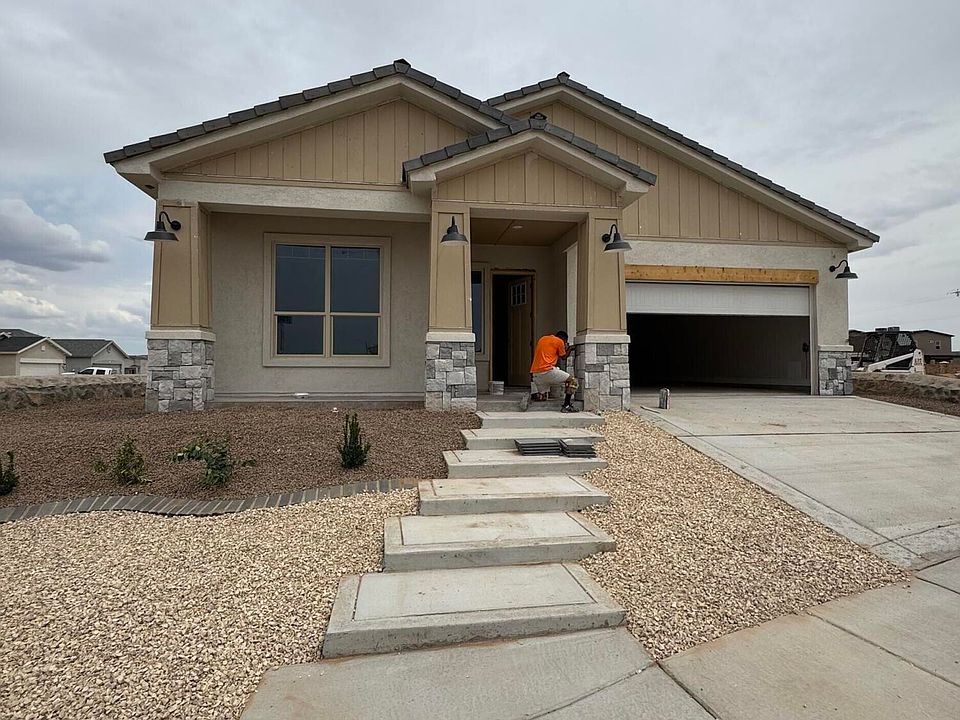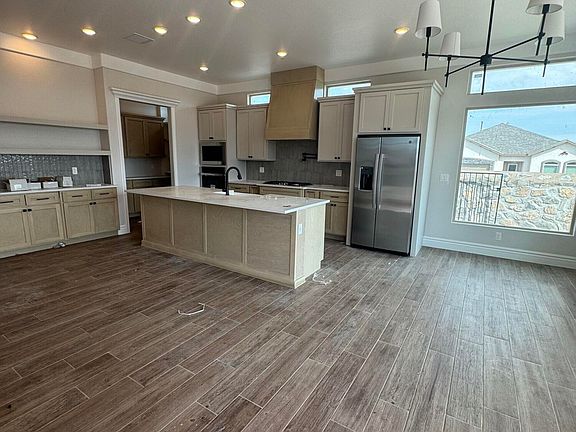 SOLD BEFORE LISTED. Looking for a 3-car garage home with modern elegance and thoughtful design? This stunning 4 bedroom, 3-bath home checks every box. from space and functionality to style and comfort. Featuring a rare tandem 3-car garage (where one car parks behind the other), this setup offers the ideal blend of storage and convenience for families, hobbyists, or anyone needing that extra room. Step inside to experience a custom feel throughout — every detail has been carefully curated to impress. The heart of the home is a chef-inspired kitchen with a massive island, designer tile backsplash, quartz countertops, a handy pot-filler, and an impressive walk-in pantry that will satisfy even the most organized home cook. Open-concept great room flows seamlessly into the dining area and out to the backyard. Oversized windows flood the space with natural light and showcase the spacious covered patio.