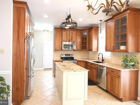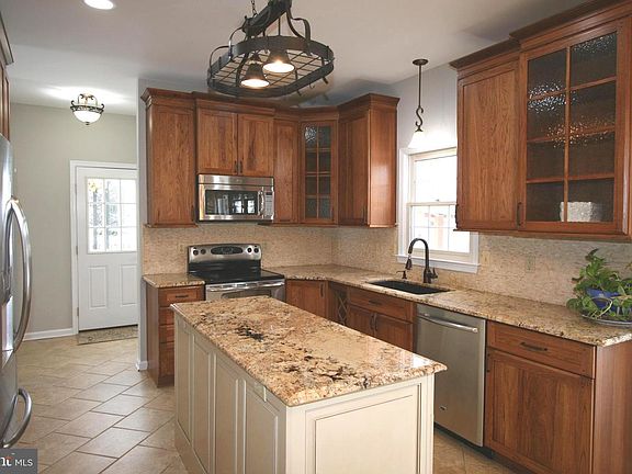 Offers in hand. All offers due by Monday 8:00 pm . Commuters special! Walk to MARC train. Freshly painted, new carpet and ready for new owners. This three bedroom colonial is finished on all three levels. You're going to love the custom hickory kitchen cabinets and center island! Offers 9 foot ceilings, full front porch, upgrade kitchen with 42" hickory cabinets, granite counters, stainless steel appliances, center island, ceramic tile floors, remodeled baths, crown molding, 50 year architectural shingles, out door kitchen, fenced backyard, three storage sheds- one a 12 x24, raised garden beds and more! NO HOA fees! Two 275 gallon water tanks in back yard convey. Safe in basement doesn't convey. Quick settlement possible.