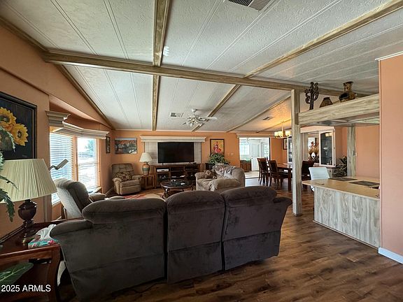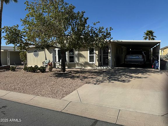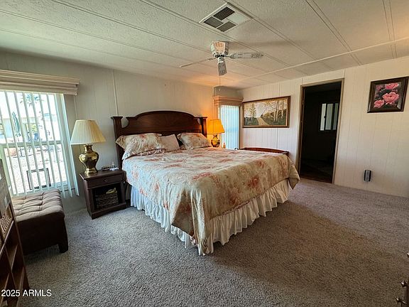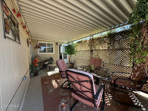 Beautifully maintained home in fantastic retirement community. Open floor plan with textured walls, updated vinyl windows, stylish window cornasis and great vinyl wood flooring. Updated stainless wall oven and range top, new bathroom sinks, RO system and complete water line re-plumb of the house.  The Furnace and AC was replaced new in 2023 and the roof was reshingled in 2019. The home boasts an added room with a well build air conditioned Arizona room. Outside there is a tranquil sitting area, artificial turf, covered patio and even a drip irrigation system for the shrubbery. There is also a whole house water softener system. This home is move in ready! The furnishing stay, and it is completely furnished with dishes, pots/pans and linens.  Come see this exquisite home at 3808 N Illinois.