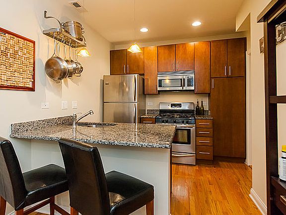 Super cute, high 1st floor unit with split bedroom floorplan. Open kitchen w/ granite/stainless & updated bath. Hardwood floors throughout. In-unit laundry and central A/C. Big, shared deck off kitchen. 3 blocks to Addison Brown Line. Walk to Trader Joe''s and Southport fun. Extra storage and bike room. Reasonable HOA fee. Pets allowed. Easy street parking. High owner - occupancy rate. Move right in with no projects!