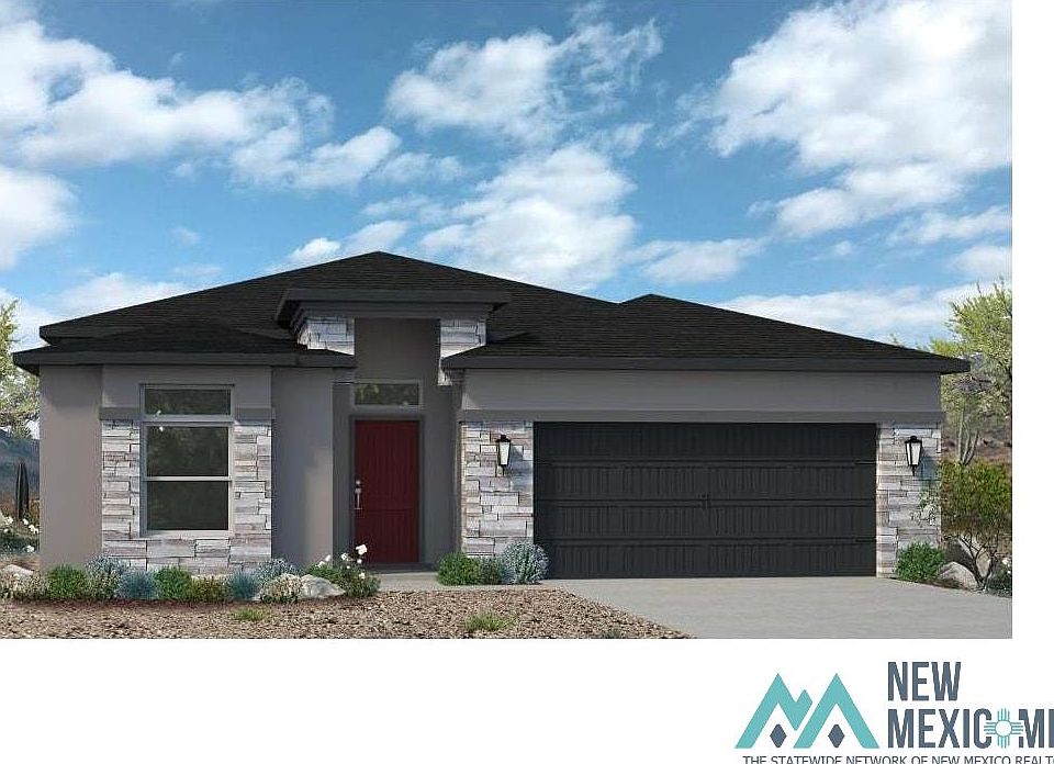 The Emily floor plan has 4-bedrooms and 2.5-bathrooms with an open concept for the kitchen, dining and living area. The spaciousness of the home feels amazing with the high ceiling. The extended back porch is great for sitting and enjoying the beautiful NM sunsets. In this floor plan the primary suite is in the back of the home overlooking the backyard. The primary suite bathroom has 2 sinks and a beautiful walk-in shower.