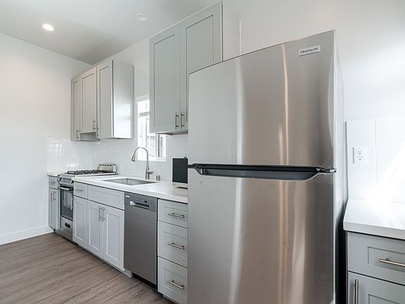 Large, modern one-bedroom, one-bathroom apartment is currently available for rent.This unit has recently been refreshed with new paint and features excellent natural sunlight. Inside, you will find hardwood flooring and recessed lighting. The modern kitchen is fully equipped with stainless steel appliances, including a stove, refrigerator, dishwasher, and microwave. Small shared balcony.