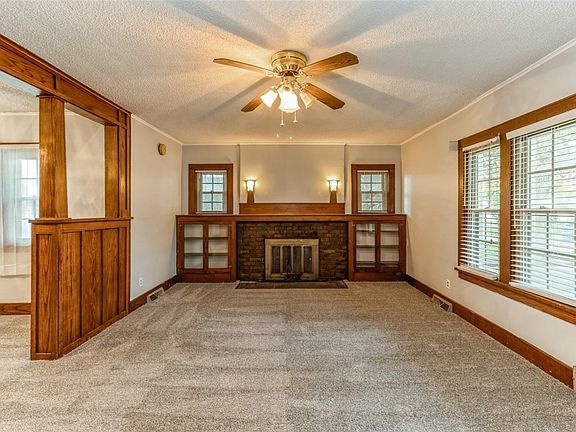 Beautiful craftsman Style with original woodwork and great curb appeal. Most major items have been updated including siding, roof, windows, furnace and a/c. Very open floor plan with new carpet living area and bedrooms. Primary bedroom has a 1/2 bath. Big kitchen with oak cabinets and new countertops and sink. 1 car garage plus carport and additional parking. Property being sold "as Is". All information obtained from Seller and public records.