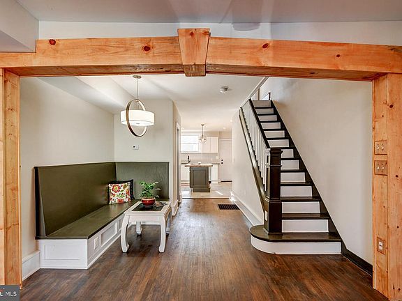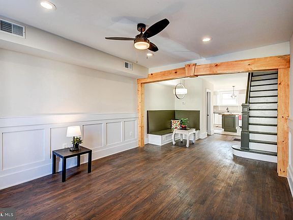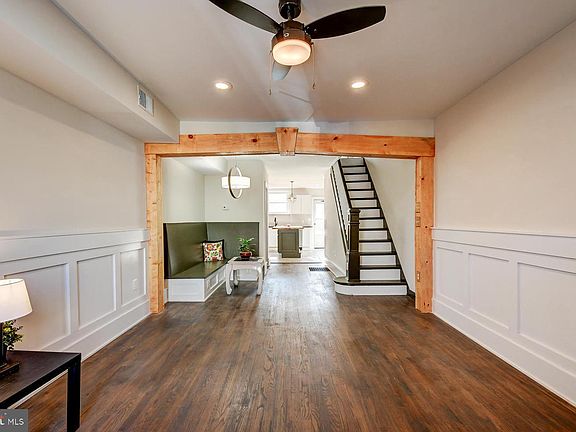 Stylish Highlandtown Rental with Modern Upgrades! This well-appointed interior row home in the heart of Highlandtown offers a blend of classic charm and modern updates across three levels. The main floor features a welcoming living room with hardwood floors, wainscoting, recessed lighting, and a ceiling fan. The dining area includes built-in bench seating and flows seamlessly into a sleek kitchen with granite countertops, stainless steel appliances, a tile backsplash, island, and half bath nearby. Upstairs, the spacious primary suite includes a walk-in closet, tray ceiling, and an en-suite bath with dual vanities and a tiled tub/shower combo. A second bedroom also offers an attached full bath and cozy carpet throughout. Additional highlights include a full unfinished basement, fenced rear yard with paved patio, and a location just blocks from Patterson Park with easy access to Canton, local dining, and commuter routes. Showings begin soon!