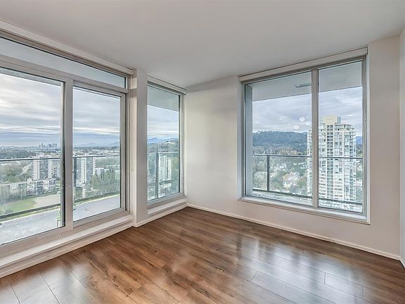 CITY OF LOUGHEED - TOWER 1: This 27th-floor NW corner unit features 2 bedrooms with ensuites, a den, and a 350 sq. ft. wraparound balcony. The space offers high ceilings, large windows, and premium finishes including quartz countertops, Bosch appliances, and a Panasonic microwave. Enjoy stunning views of the city, mountains, and water, from downtown to SFU and Metrotown. Amenities include A/C, a 3-floor, 18,000 sq.ft. clubhouse with indoor/outdoor spaces, a fitness center, yoga studio, game rooms, and more. The building also features 24-hour concierge services, 5 high-speed elevators, a dog park, and easy access to shopping, dining, and banking.