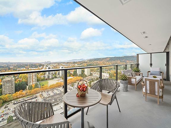 Welcome to The City of Lougheed – Tower One, developed by SHAPE Properties. This stunning 1 bed, 1 bath home offers over 600 sf of indoor/outdoor living with floor-to-ceiling windows, central A/C, and a spacious covered balcony showcasing beautiful city and mountain views. The sleek kitchen features integrated Bosch appliances, a gas cooktop, quartz countertops, and a functional island perfect for entertaining. Enjoy over 22,000 sq ft of world-class amenities, including a full fitness centre, private study pods, rooftop lounge with BBQ area, and concierge service. Steps from SkyTrain, shops, and restaurants, an effortless lifestyle awaits! OPEN HOUSE: Sat, Nov 8th from 11:30-1:30pm & Sun, Nov 9th from 2:00-4:00pm. MUST SEE VIRTUAL TOUR!