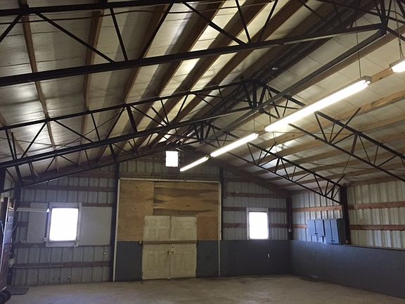 Large open warehouse with 1800 total SF. Building measures 60' x 30' total with walled off area in back measuring 20' x 30'. Back also includes a 5' x 6' bathroom. Wired and installed electrical outlets and lighting. Great for events and entertaining. Sits on one acre of land. Property also includes 1500 SF 2 bed/2 bath house with open concept kitchen/dining/living area. Attached carport includes an enclosed storage area. New architectural roof installed January 2017. Selling property as is.