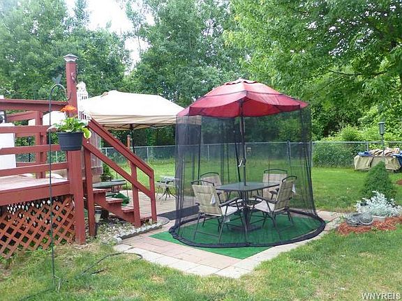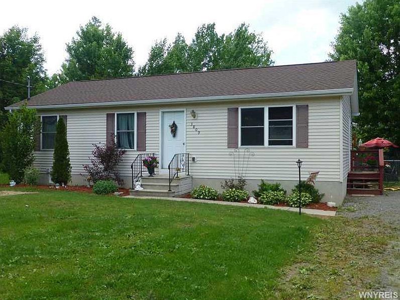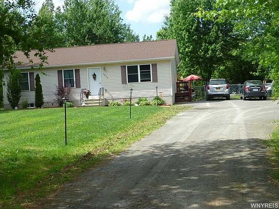 Darling 2004 vinyl 3 bedroom ranch in the country in the Town of Wilson on 2.5 acres of land! Big kitchen with spacious eating area and sliding doors to a deck, dog run, shed and fenced yard with fire pit! More land beyond the fence goes back over 550 ft with wooded area. Patio in back, extra parking area - 200 feet of frontage - WHAT'S NOT TO LIKE!!