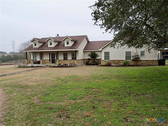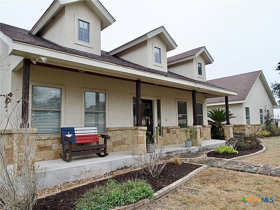 Location, Charm, Country-Living, Close to Town, 24x36 Metal Shop, Acreage, Chicken Coop, and the list goes on!!!! This 2014 four bedroom, two and a half bath home with an upstairs bonus room checks every box on the list. It is located just a few miles south of Cuero, Tx and sits on 2.5 acres on top of a hill that gives you a picturesque view for miles. If sitting on the back patio with your favorite beverage and watching the sunrise or sunset is YOUR thing, look no further. This custom home has all granite countertops throughout with a large island bar in the kitchen, a breakfast area and a formal dining area. The HVAC was replaced in October of 2023, new hot water heater and water softener in June of 2024, new carpet in 2024 and new fence in 2022. The shop has all the room you need for storage, a man cave or a side hustle. Come check out this little piece of heaven on Earth!!