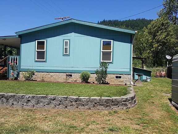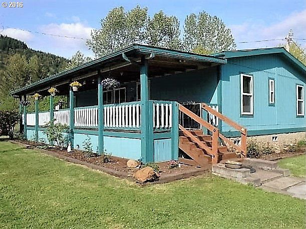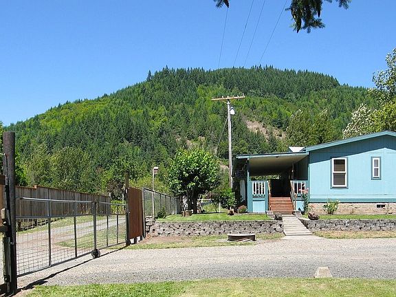 Very nice remodeled 1996 home, with new windows, new flooring, new carpet in bedroom, remodeled master bathroom. Live in the country yet enjoy access to CenturyLink internet! Row River is across the road with a trail to your own swimming hole. Fenced in property with surrounding views of trees and hills, covered deck, lots of outbuildings, and the sounds of the water of Row River.