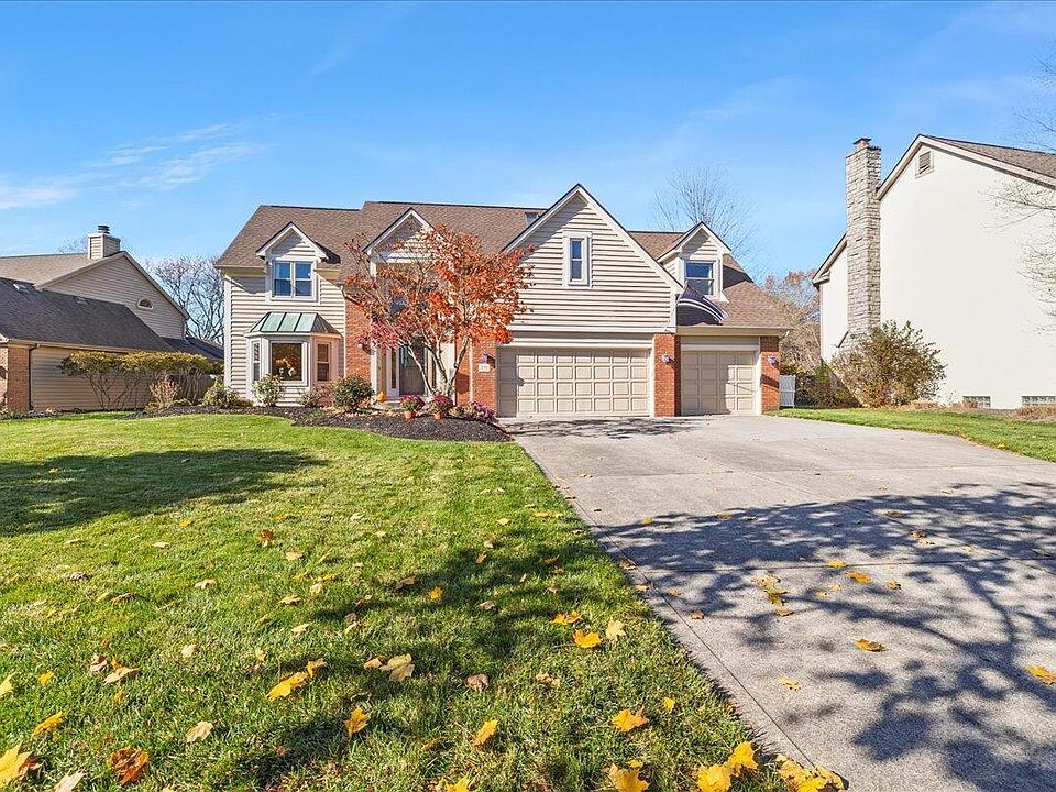 Great home for living & entertaining lin Windsor Bay close to Hoover Reservoir w/boating, fishing, trails, & park. Two story home offers many upgrades w/plenty of space. Cook's kitchen anchored by oversized granite island includes SS appliances w/dual-fuel range. Two story great room provides an open view of the private fenced backyard that includes a paver patio, pergola & fire pit, all situated on almost a half-acre lot that backs up to woods with stream. Primary Suite has large walk-in closet & walk in shower & whirlpool tub. Convenient 2nd floor laundry. Four seasons room provides additional living space all year round. Extra deep three car garage and walking distance to Westerville North High, Heritage Middle, and Robert Frost Elementary schools. Also close to bike & leisure trails.