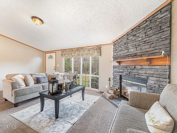 Step inside, and you'll be greeted by a warm and inviting interior. The living area is perfect for entertaining with a cozy wood-burning fireplace for chilly evenings. The primary bedroom is a peaceful retreat, complete with a private en-suite bathroom. Two additional bedrooms offer versatility and each room features walk-in closets.