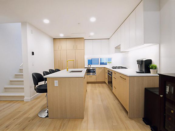 This 3 level, 4 bedroom, 2 and a half bath townhouse is located on a quiet, tree-lined stretch of Rochester in West Coquitlam. The main level features a seamless kitchen, living, and dining area plus a powder room, with direct access to your patio—complete with gas and water hookups. Featuring integrated Fisher & Paykel appliances with a gas cooktop, air conditioning, a smart thermostat, upgraded oak flooring in all bedrooms, and glass shower doors. The primary suite spans the top level with two spacious walk-in closets, heated floors in the ensuite, and a private patio. Just a 10-minute walk to Lougheed Town Centre SkyTrain and mall, restaurants, shopping, and a nearby golf course. EV parking, 1 storage locker, and dedicated e-bike storage are included.