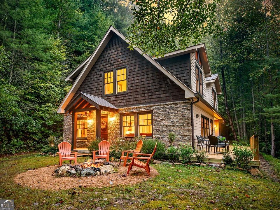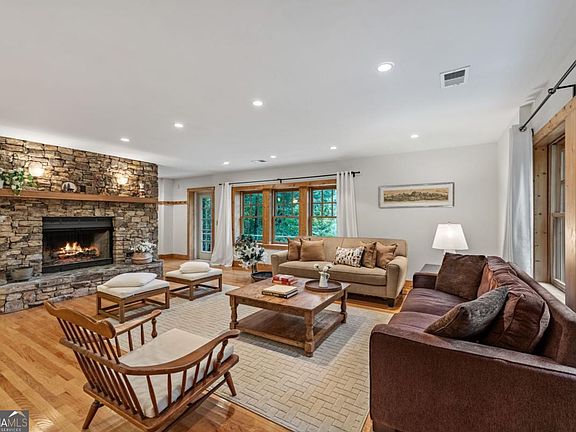 Experience the Ultimate Mountain & Lake Retreat in the Cohutta Wilderness. Perched on 4.6 acres adjoining Hills Lake and more than 20,000 acres of National Forest, this 3BR/2.5BA mountain retreat offers rare privacy, sweeping year-round lake and mountain views, and direct access to some of North Georgia's most iconic hiking and biking trails. A brand-new porch invites you to relax and soak in ever-changing scenery. Inside, European-inspired styling blends seamlessly with rustic mountain charm, all supported by high-speed fiber network for modern convenience. The open-concept main level features a spacious kitchen, dining area, and a stunning wood-burning stone fireplace-perfect for cozy evenings after days of adventure. A convenient half bath, already stubbed for a full, and an adjoining covered porch create the potential for a future main-level primary suite, adding even more versatility to the floor plan. Upstairs, the primary suite is a private haven with a vaulted beadboard ceiling, peaceful sitting area, and spa-like bath with a soaking tub and separate shower. This private suite also captures sweeping mountain views and overlooks the lake. Two guest bedrooms, a full bath, and a versatile loft offer plenty of space for family and friends. Step outside and the adventure begins: private trails lead directly into the Cohutta Wilderness, where endless hiking, mountain biking, trout fishing in Mountain Town Creek, and canoeing on your private lake await. After exploring, unwind on the expansive deck and take in the quiet beauty of the forest and lake below. Tucked away at the end of a long gravel road yet only 11 miles from downtown Ellijay's dining, shops, and wineries, this property strikes the perfect balance between seclusion and convenience. Whether you're an outdoor enthusiast or simply craving peace and tranquility, this one-of-a-kind retreat offers the ultimate North Georgia mountain lifestyle.