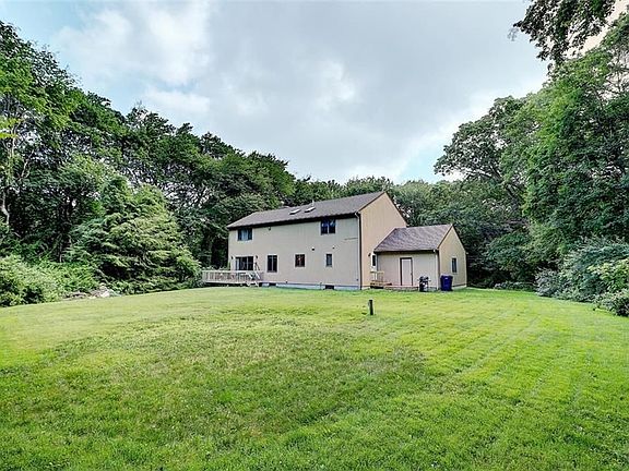 Contemporary Colonial built in 1987 with wonderful front porch is nicely situated on almost an acre lot - plenty of parking, privacy and large backyard. New Kitchen (2016) including granite counters, amber maple cabinets, tile backsplash, lights under cabinets plus new Stainless Steel appliances: Kenmore Elite Refrigerator, 4 burner electric cooktop, Double oven/convection, Insinkerator, Sharp microwave. Vaulted ceiling w/skylight in Living Room plus 2 sided Fireplace to Family Room with Sliders to Deck and level yard. Formal dining room conveniently located off Kitchen. Freshly painted 1st floor plus new flooring on 1st floor. Pantry. Two-car garage attached garage. Four spacious bedrooms. Laundry on 1st floor with door to small side deck. The contemporary flavor enhances the Open floor plan to promote your lifestyle. Town Water. Natural Gas Heat. Convenient location with easy access to Rt. 4, Train, stores, Wickford shopping, restaurants, Wilson Park, Yawgoo Valley Ski Area & Water Park, University of RI, Farmers Markets, Jamestown, Newport and beaches.