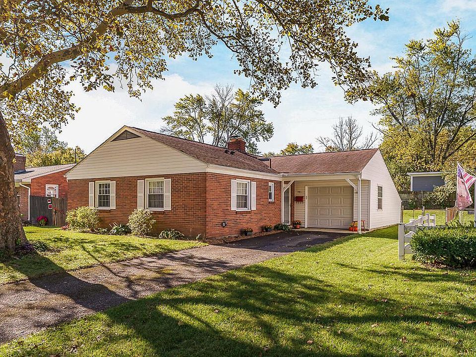 Adorable brick ranch with covered entry and attached one-car garage that includes an attached storage shed. Inside, you'll find 3 bedrooms and a beautifully updated kitchen featuring custom cabinetry, glass tile backsplash, and a large picture window over the sink overlooking the backyard. Composite wood flooring flows through the kitchen and living areas for a clean, modern look. The updated bath offers Corian countertops, tile flooring, and a sleek shower surround. Stackable washer and dryer are included in the sale. Enjoy the covered patio and spacious backyard — perfect for relaxing or entertaining. Conveniently located near parks, shopping, and more!