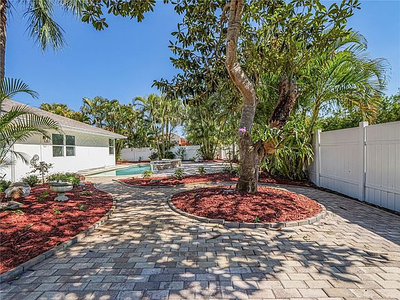 Sebastian, FL! Attractive pool home with all new PEX plumbing in 2024, newer flooring, new roof 2017, newer water heater 2023, freshly painted interior and exterior, new gutters, newly landscaped with custom meandering brick paver pathways, fenced yard, lush landscaping for privacy, outdoor shower, & irrigation w/well. Open, bright, & airy 3/2 split plan featuring sleek modern kitchen with stainless steel appliances, shaker cabinetry, gorgeous granite quartz countertops & breakfast nook. Stylish upgraded baths. 12' ceilings. Primary en-suite with garden soaking tub. Move-in ready just for you!