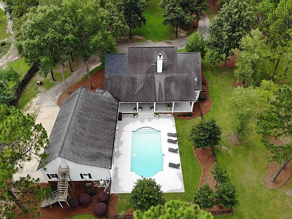 Walk through the front doors and it's like walking into a show room. Breathtaking Home situated on 3 professionaly landscaped acres. The large covered front porch invites you into the home with a grand foyer that opens to a spacious dining room both graced with 10 foot ceilings and beautiful hardwood flooring. Made for entertaining, the oversized kitchen has stunning custom cabinetry, stainless steel appliances, kitchen island, granite countertops, and huge breakfast room graced with an abundance of windows, built in corner cabinets and built in bench. Step into the oversized greatroom with gorgeous stacked stone gas fireplace, vaulted ceiling with specialty lighting, built in bookcases, hardwood floors, a wall of windows and french doors that overlooks a 56x12 covered porch and an 18x36 gunite pool. The large master suite affords ample room for a sitting area, a luxury bath that has an extra large glass & tile shower with steam connections, whirlpool tub, double vanities, dressing area for her, and a huge master closet that measures 10'x16.5. There is also an additional bedroom/office downstairs and a large laundry complete with built in cabinets, sink and toilet. The upstairs includes 2 additional bedrooms, 2 full baths, and a large bonus room ideal for a media, home school or exercise room. The covered back porches surround 2 sides of the inground pool. On the porch is a gas fire pit to enjoy in the cooler weather. There is a 3 car attached garage and an additional detached 2 bay wired workshop/garage. To complete this home is surround sound, central vac, alarm system, walk in pantry, unfinished bonus room/storage over garage, fencing and sprinkler system. AND in the back corner of the property is a custom tree house/fort for the little ones. So many updates in this home....move in ready. A stunning Southern grand home!
