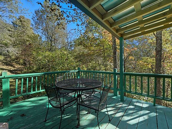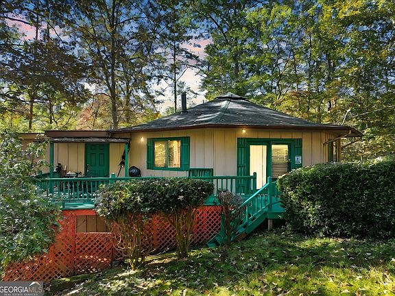 Welcome to this charming FURNISHED OCTAGON-SHAPED COTTAGE with a WOODED/MOUNTAIN VIEW in the heart of Coosawatee Resort -featuring a NEWLY PAINTED DECK, an open living area with VAULTED CEILINGS, a WOOD-BURNING FIREPLACE with rock wall, and a large kitchen with breakfast area, laminate floors, bar area, pantry, and lots of cabinet space. Enjoy 2 bedrooms on the main, including a PRIMARY WITH HARDWOOD FLOORING and an ADDED FULL BATH showcasing a CLAW-FOOT VINTAGE TUB, separate shower, wood ceiling, NEW LVP FLOORING, and washer and dryer area, plus a GUEST FULL BATH with CUSTOM VANITY and BUCKET SINK; updates include a NEW SHINGLE ROOF, and the LARGE CRAWL SPACE provides STORAGE and a STORM SHELTER WITH CONCRETE FLOOR. Take advantage of GATED COMMUNITY AMENITIES-TENNIS, INDOOR HEATED OLYMPIC-SIZED POOL, 2 OUTDOOR POOLS, GAME ROOM, FITNESS CENTER, FISHING POND, and RIVER PARK WITH RIVER ACCESS, PAVILION & PARK AREA-all WITHIN 10 MILES OF DOWNTOWN ELLIJAY, VINEYARDS, APPLE HOUSES, RESTAURANTS, and more!