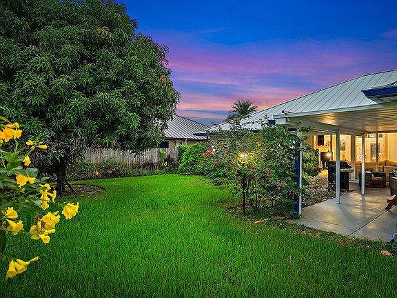 Step outside to your private backyard oasis, where tropical landscaping, fruit trees, and a fully fenced yard create the perfect setting for outdoor living. A large shed provides convenient storage, and planters add charm to the garden space. The expansive lanai offers room for barbecues, poolside lounging, or quiet evenings enjoying Florida's warm breezes. Furniture is negotiable.