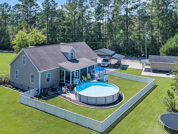 Don’t miss this rare opportunity to own a spacious 5-bedroom, 3-bath home that combines privacy and peaceful country living with the convenience of being just minutes from shopping, dining, schools, and healthcare. Set on 7.49 acres with mature trees including two emerging pecan trees and beautifully maintained landscaping, this property offers breathtaking views and a variety of outdoor spaces—screened porch, deck, fenced above-ground pool, and two patios—perfect for entertaining or relaxing. Inside, the freshly painted open living room showcases an 8.5-foot electric fireplace, brand-new LVP flooring, ceiling fans, and surround sound wiring. The updated kitchen features stainless steel appliances, new cabinets with under lighting, a range hood, granite countertops, and stylish shiplap and brick accents. The first-floor primary suite is accompanied by two additional bedrooms, a full bath, and a laundry room. Upstairs, you’ll find a spacious bonus room with a wet bar, two more bedrooms, and another full bath—ideal for guests or recreation. Additional highlights include a large one-garage/shed with shelving, oversized carport, barn, and stocked pond, making this property truly one of a kind. **Manufactured home sitting on one acre between house and barn is a separate property that is not for sale at this time.**