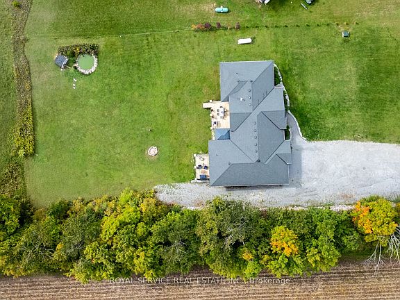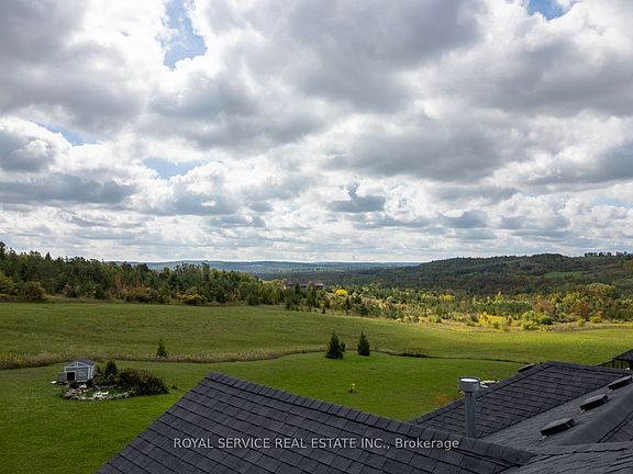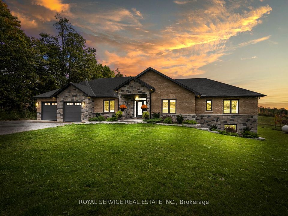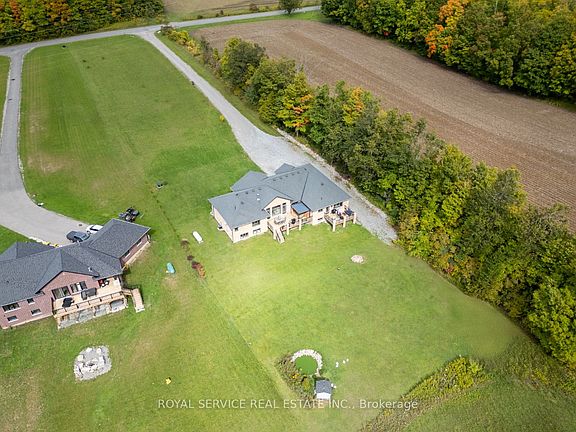 Set on just over two acres in the scenic hills of Cavan, 381 Sharpe Line is a custom-built, multi-generational home offering both privacy and functionality. This spacious residence features a total of six bedrooms, five bathrooms and two full kitchens thoughtfully designed to accommodate extended family living with a separate in-law suite with private entrance and separate deck. The main floor showcases a large, custom-designed kitchen with stainless steel appliances, granite countertops, and an oversized island that overlooks a bright living room with a floor-to-ceiling propane fireplace. Expansive windows invite natural light and reveal breathtaking views, with walkouts to a private deck. A separate dining room overlooks the front yard, while three bedrooms and three bathrooms provide ample space, including a convenient laundry area with garage access and a pass-through to the in-law suite.The lower level offers a versatile layout with two additional bedrooms, a three-piece bathroom, and an expansive family room complete with a bar area. Additional highlights include a custom wine cellar, exercise room, office or den, generous storage, and both front and back staircases. The in-law suite is fully self-contained and includes a custom kitchen, dining area, comfortable living room with deck access, large bedroom with double closets, and a four-piece bathroom with laundry. A two-car garage provides direct access to the home and features a separate man door. The large lot offers potential for a workshop at the rear. Located just 10 minutes from Peterborough, 5 minutes to Highway 115 and 20 minutes to Highway 407, this home also enjoys nearby access to Cavan Creek Park & Trails and local conveniences. This beautiful custom home is well-positioned for convenience while offering privacy and exceptional outdoor space.