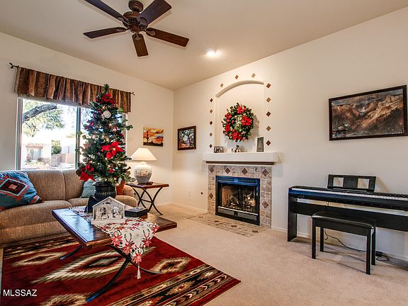 Magnificent Mountain Views! Beautiful home located in the heart of Oro Valley. Open and bright 3 bedroom 2 bath plus den, that doubles as an art studio. The Great room boasts a cozy fireplace for those chilly Arizona nights. The kitchen features extended cabinets/counters, breakfast nook and large picture window for those amazing views! Spacious master suite with garden tub, separate shower, dual vanities and large walk-in closet. The backyard oasis is perfect for entertaining with covered patio, built-in bbq, hot tub & professionally landscaped. You won't be disappointed. Come take a VIEW!