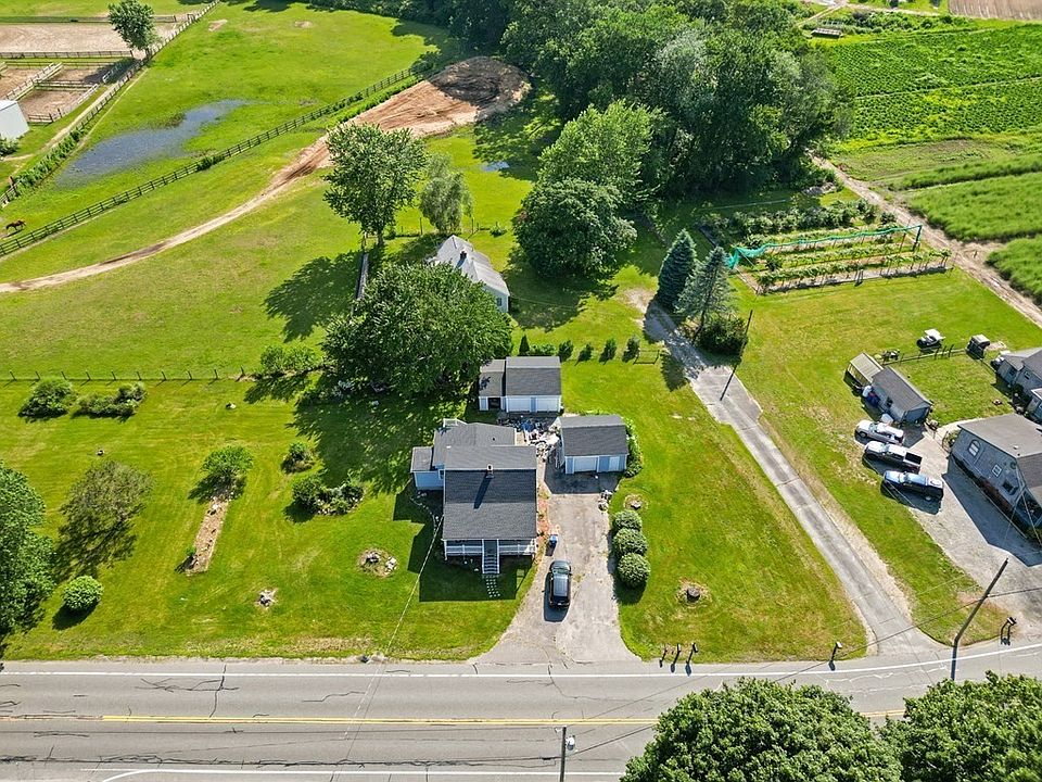 Ideally situated in a great location near Four Town Farm, this property underwent exterior updates approximately 5 years ago, including a new roof, new oil tank in 2020, low maintenance vinyl siding, and the rebuilding of both front and back porches with composite material. With two beds, one bath, and FOUR detached garages, this home offers lots of potential. The beautiful parcel of land is just under an acre in size and provides a peaceful and serene environment.You'll enjoy the convenience of being close to all the amenities along Rt 6, including shopping, the highway and quick access to nearby Providence. While the exterior of the home has recent improvements, it's important to note interior requires major renovation. Prior roof leaks have caused extensive damage to ceilings and flooring, requiring substantial repairs. Sold as-is-Cash or rehab financing necessary. Prime location, picturesque surroundings, and the potential for an interior transformation. OFFER DEADLINE 7/10 @ 10AM.