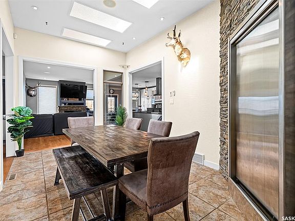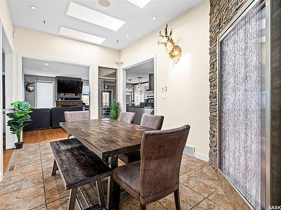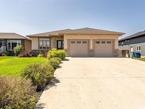 Beautiful home waiting for it's next family & located in desirable Sunningdale area of Moose Jaw and close to the Sunningdale School. This unique home has a beautiful tiled formal dining room with cascading waterfall as its focal point. The grand kitchen features a large island perfect for entertaining, gas stove, stainless steel appliances, granite countertops, ample counterspace and cabinetry as well as a walk in pantry. The living room has a stoned gas fireplace with hardwood flooring and access to your partially covered deck which makes BBQ-ing with a natural gas hook up a breeze. Down the steps to your lower deck has a pergola and leads you to the beautiful fully fenced yard with a patio and gazebo area. You'll want to spend all of your summer days outdoors in this area. The main floor has a spacious Master Bedroom that can host a king bedroom suite, a large walk in closet with built in organizers and through the closet to your great ensuite that has a large jetted tub and a walk-in tiled shower. There is another large bedroom down the hall and a second full bathroom. The lower level is equipped with in-floor heat and has entertaining in mind with a great wet bar and an oversized family area that could fit your gaming area as well as theater space with projector TV and screen. Finishing off the lower level are two more large bedrooms, a 3pc bathroom and a great utility room with storage space. The oversized DBL attached garage also has in-floor heat and utility sink for cleaning up vehicles easily. Book your personal viewing to fully see this great home!