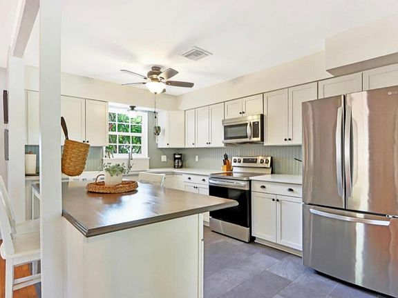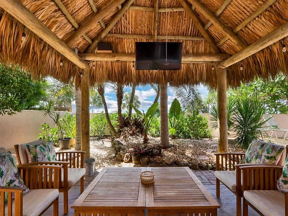 Enjoy ocean breezes from this lovely 3 BR 3 BA single family home which sits high on the ridge in one of a kind Juno Beach. 2 blocks from ocean & beautiful Pelican Lake with bike paths. Features include impact glass windows/doors, Quartz countertops, stainless steel appliances, wood flooring throughout, extra large bedrooms (can sleep 10), outdoor tiki hut living area and small grassy yard with a hammock so you can watch the gorgeous sunset views over the preserve daily. Outdoor shower and oversized 1 car garage with a rear privacy wall. Bikes and beach chairs waiting for you. Offered for annual or seasonal with 4 month minimum. Won't last long. Virtual tour available. Offered for furnished annual lease at $5,900 per month, seasonal months w/ 3 month minimum at $11,500 (prefer 4 months). Avail now. No HOA