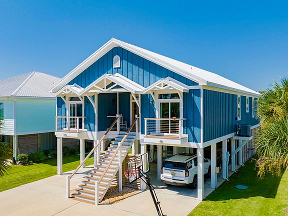 Beautiful Waterfront home with TWO Boat slips in Orange Beach! This 5 bedroom / 4.5 bath home features tile floor throughout, quartz counter tops, stainless steel appliances with wine cooler, updated primary bath, standing seem roof (2022), and large balcony over looking the canal. Located on a deep water canal with a covered boat slip with 16,000 lb. lift and open slip that will accommodate a 45' boat. Buyer to verify all information during due diligence.