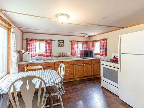 Wood burning stoveScenic hillPropane wall furnaceComfortable cabinLarge denNew siding roof windowsDining area