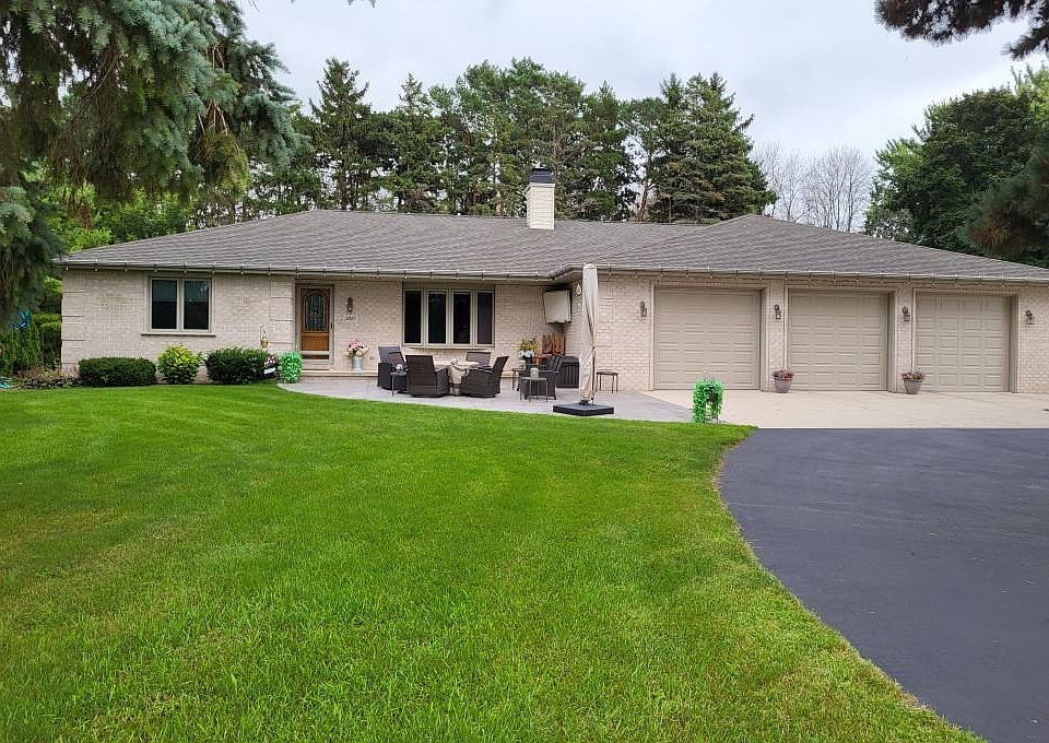 3 Bedroom ranch on beautiful lot with mature trees. Nearby parks , schools and a boat landing. Just outside Green Bay city limits on Nicolet Drive. Home has all brick front and aluminum siding on sides & back . Just shy of an acre lot that has a horseshoe shaped driveway that is blacktopped . Makes for easy in & out road access. Split bedroom design . Master bedroom has nice walk in closet & trey ceiling. Master bathroom has 2 sinks , walk in module type shower with seat. 1st floor Laundry with sink & access to exterior. Kitchen ,Dinette & Living room has open concept design with cathedral ceilings . Living room has floor to ceiling designed fireplace.