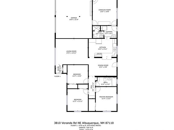 This 1570 square foot single family home has 4 bedrooms and 2.0 bathrooms. This home is located at 3810 Veranda Rd NE, Albuquerque, NM 87110.