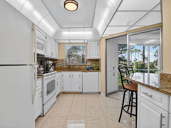 Ready to make a move? This seller is packed and ready to go! Step into this beautifully updated condo featuring gleaming white tile floors and stylish laminate in both bedrooms. Enjoy serene views of trees, golf course, and lake from your expansive 24-foot balcony, enclosed with elegant glass sliders for year-round comfort. Natural light and fresh air flow effortlessly through sliding glass doors in the kitchen, living room, and primary bedroom. The split-bedroom layout offers privacy for guests or family, while thoughtful upgrades--including a replaced electrical panel, GFI outlets in the kitchen and guest bath, and balcony outlets to ensure peace of mind. Stay cool with a newer AC unit (2022). Enjoy the convenience of a well-maintained home that's truly move-in ready. Desirable community with tons of amenities including pickleball, tennis, restaurant, pools, gym, golf and more. Close to PBIA, shopping and short drive to the beach.