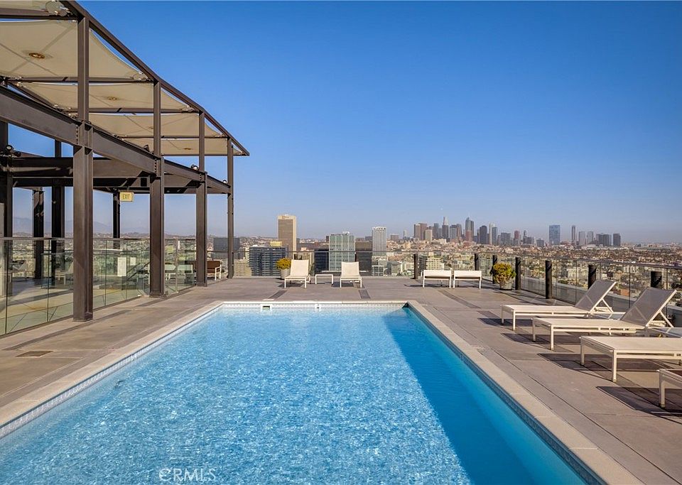 Introducing a truly exquisite offering in the heart of the mid Wilshire District, this luxury high-rise condominium in Koreatown sets the standard for sophisticated urban living. Boasting a prime location, this meticulously upgraded unit is a haven of modern elegance and convenience. Upon entering, one is immediately captivated by the stunning bamboo wood floors and the airy ambiance created by the high ceilings. The open concept floor plan seamlessly blends the living and dining areas, creating an ideal space for entertaining guests. The kitchen is remodeled with marble backsplash and stainless steel appliances, elevating the culinary experience to new heights. Privacy is paramount in this exclusive residence, as the bedroom features a custom sliding door enclosure that allows for solitude and tranquility. Every detail has been thoughtfully considered, ensuring comfort and style throughout including smart automated wireless roller shades. The building itself offers a range of exceptional amenities, including 24-hour security for peace of mind, gated parking for convenience, and three elevators for easy access. The crown jewel of this residence, however, is undoubtedly the rooftop pool and spa, where residents can unwind while enjoying the breathtaking 360° views of the vibrant city of Los Angeles. For those who enjoy hosting outdoor gatherings, the barbecue grills provide the perfect space for al fresco dining and entertaining. Located at the coveted intersection of Western and Wilshire, this condominium is surrounded by an abundance of amenities within walking distance. From renowned restaurants and trendy cafes to vibrant nightlife and cultural attractions, residents will find themselves immersed in the vibrant energy of Koreatown. Whether seeking a morning workout or evening walk on the thread mill, the state-of-the-art gym within the building offers a range of fitness options to cater to every lifestyle. This luxury high-rise condominium presents a rare opportunity to experience the epitome of urban living in one of Los Angeles' most sought-after neighborhoods. With its fully upgraded features, impeccable design, and a plethora of amenities, this property is truly a gem to behold. Don't miss your chance to own this exceptional condo and embrace a lifestyle of luxury and convenience in the heart of Koreatown.