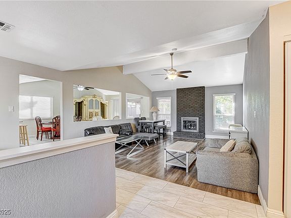 Beautifully maintained single-story home just minutes from the Las Vegas Strip. Offers 1,600+ sq. ft. with 3 bedrooms and 2 bathrooms. Primary bedroom features a walk-in closet and bathroom with dual sinks and walk-in shower. Cozy formal living room with fireplace. Separate den ideal for office or media room. Spacious dining/family area with ceiling fan. Upgraded kitchen with granite countertops, stainless steel appliances (included), reverse osmosis system, and water softener.