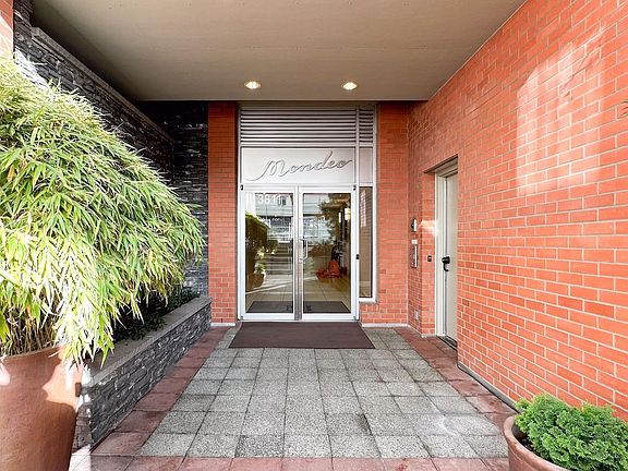Welcome to Mondeo! Beautifully appointed 2 bed + den, 2 bath upper floor home in one of Burnaby's most desirable neighbourhoods. This bright and spacious 833 sq ft unit features an open-concept layout with hardwood floors, granite counters, stainless steel appliances, gas range, and large windows that fill the space with natural light. The private balcony offers peaceful city and mountain views - perfect for evening sunsets. Primary bedroom includes a full ensuite and generous closet space. Enjoy in-suite laundry, secure parking, and storage locker. Concrete low-rise built in 2007, pet and rental friendly. Steps to cafes, restaurants and shops along Hastings Street, with easy access to transit and downtown Vancouver. A perfect choice in Burnaby Heights!