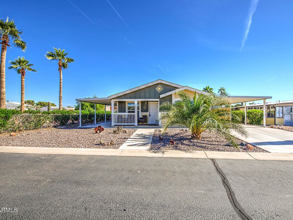 Walk onto your quaint front porch and into your beautifully furnished near new home! Built in 2017, this home has an open floorplan. A spacious family room opens to a beautifully upgraded kitchen with gorgeous cabinets and plenty of counter space. A breakfast counter as well as a great dining area to entertain! This is a 3 bedroom and 2 bath home. Great laundry room that walks out to your carport and large shed with roll up door for your toy storage! The patio is on the full north side of the home.