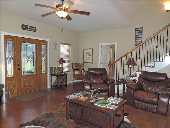 3 bedroom 2.5 bath home on 1 acre. Covered patio, storage building. Fenced backyard. Home has stained concrete floors in living areas. Granite tile counters in kitchen with stainless appliances and gas cooktop. Oversized laundry with sink and room for freezer. Master bath has dual sinks, jetted tub and slate floors and walk in shower. Split bedroom floorplan. Large gameroom or media room upstairs with half bath. Buyer and buyers agent to verify the schools.
