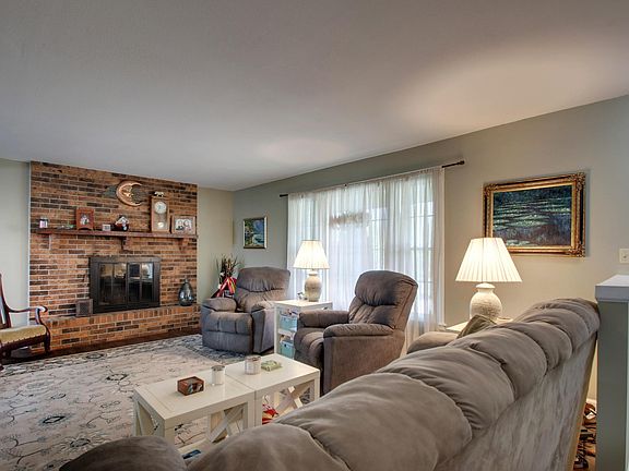 This charming brick ranch boasts 3 bedrooms, 2 1/2 bathrooms, finished basement and a spacious 2-car garage with attached storage room. Room in basement could be a 4th bedroom. Two fireplaces will be perfect for cozy evenings this winter! HVAC-'19, dishwasher-'23. Basement TV & brackets will convey. Basement workshop & washer/dryer will convey. Delightful covered patio and fully fenced yard is the perfect space for summer time enjoyment. Lagoon fee: $45/quarter. Inspections welcome, selling as-is.