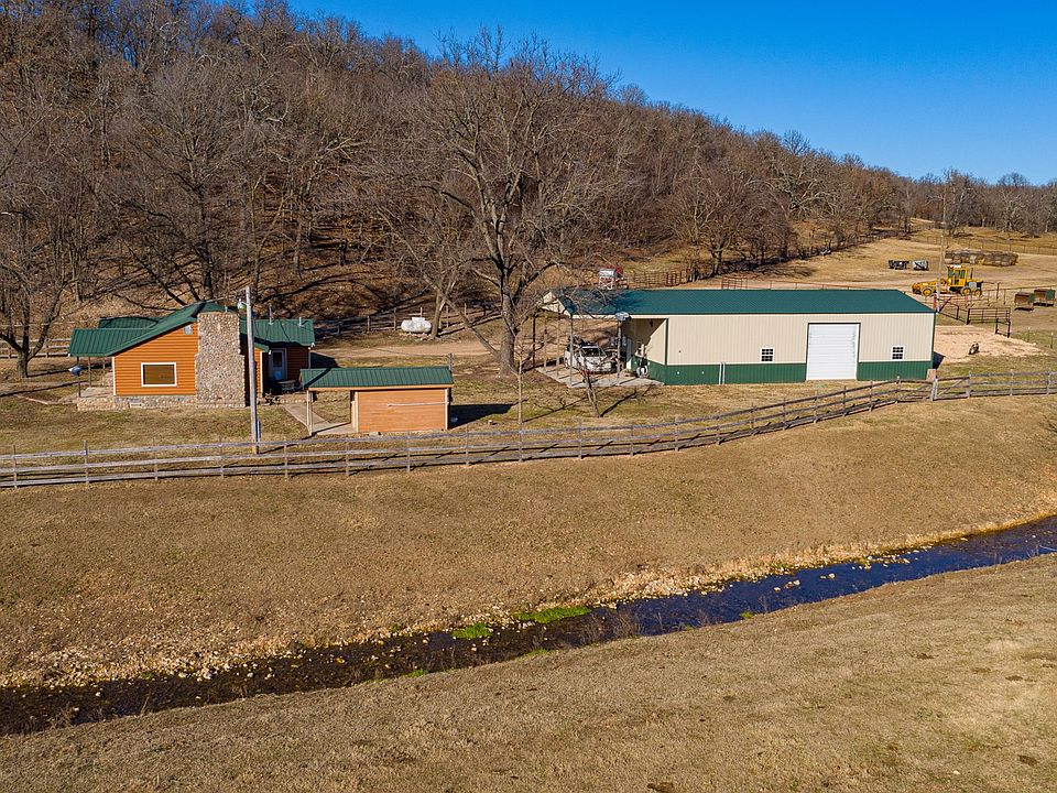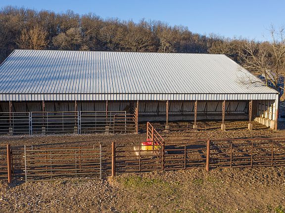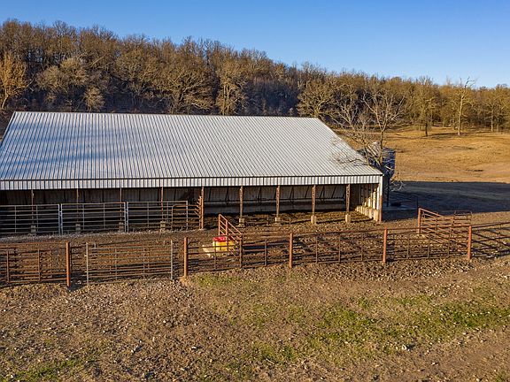 Productive Cattle Ranch & Hunting Land For Sale in Delaware County, OK This 1,260 +/- acre ranch is located just northeast of Jay, Ok in northeast Oklahoma near Grand Lake of the Cherokees. The ranch is a highly efficient cattle ranch boasting over 20 ponds plus 12 pastures ranging from 30 to 150 acres with working pens, automatic waterers at main barn, semi accessible, nearly fenced and cross fenced with raised cattle guards throughout and improved Bermuda pastures. This property also features a cozy 3 bedroom, 1 bath log sided home with fireplace located in the large main living area with a picturesque view of the bottom land next to the large 3 high bay 40' X 60' shop that includes a full apartment. This property also allows for outstanding multi-species hunting, breathtaking view both sunrise and sunset, mature timber, and a gorgeous creek that meanders east to west through the main bottom. Also included on the property is a 60' X 80 equipment barn. The deer pictures are actual deer on property.